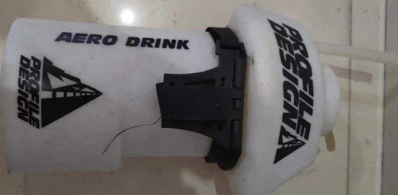 Front-end triathlon hydration aero bottle solution easily mounts between aerobars so you don’t have to deviate from the aero position to stay hydrated.
