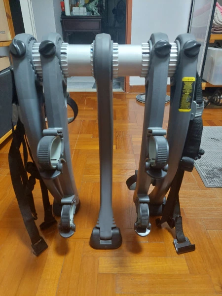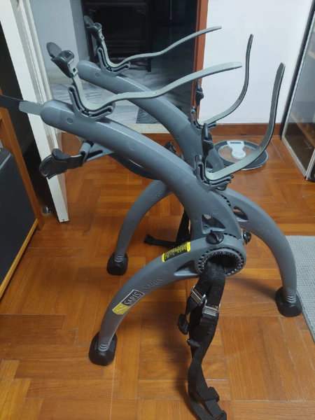Rubberized feet protect car and coated straps protect bike