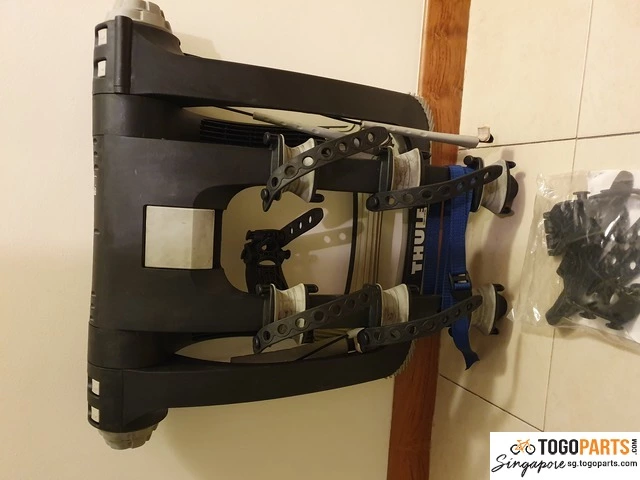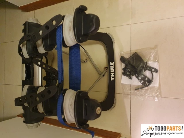 Thule raceway rear mounted bike rack for sale. Very stiff and hardy rack that comes with locking mechanism. Easy and fast setup. Used but not abused. Comes with extra straps.